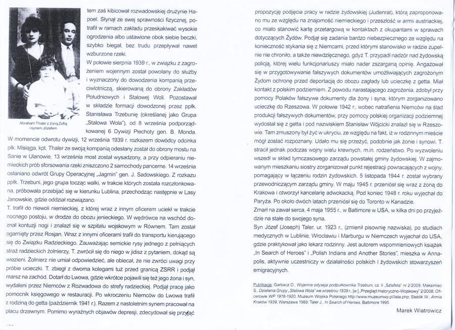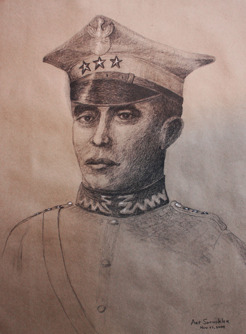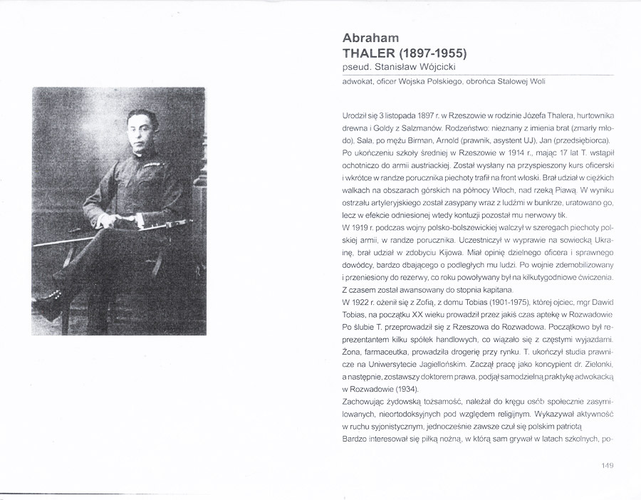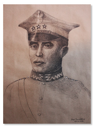 | Captain Abraham Thaler Abraham Thaler (1897-1955) Lawyer, Officer of the Polish Army, Defender of Stolowa Wola and honored by the Regional Museum of Stolowa Wola (Charcoal drawing on right by Art Smookler, November 22, 2009) Doctor Abraham Thaler, a lawyer in private practice was recalled to active duty on August 20, 1939 - prior to the outbreak of World War II on September 1, 1939. He was a combat officer in command of an infantry platoon - assisted by antiaircraft units in the defense of a military-industrial complex in Stalowa Wola. For further details, see orders of the 6th Polish infantry in the letter below. |