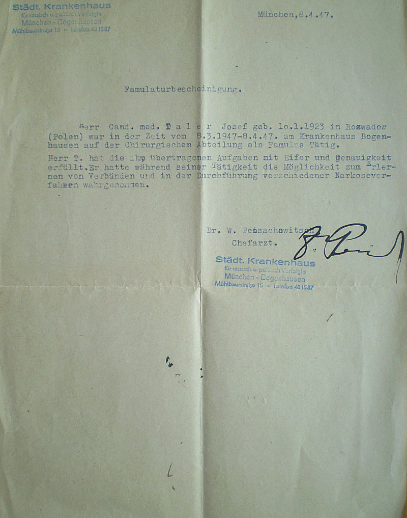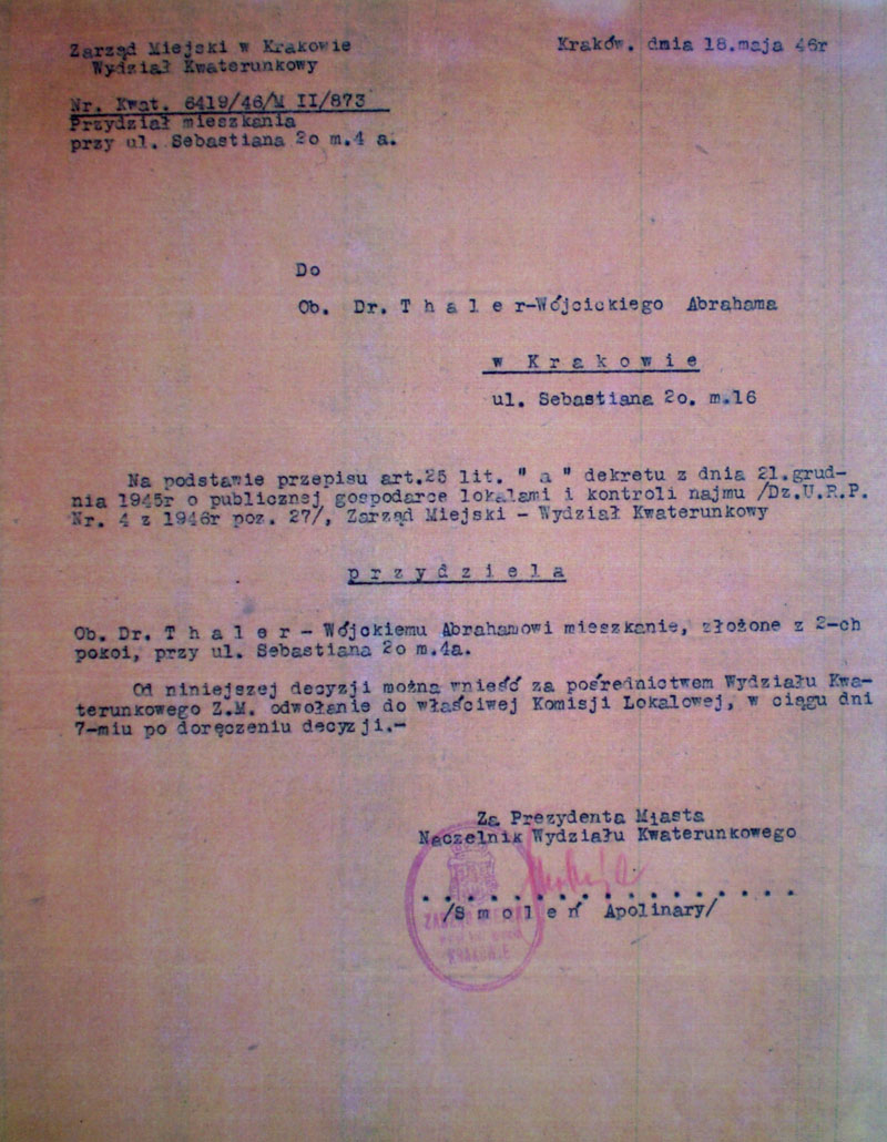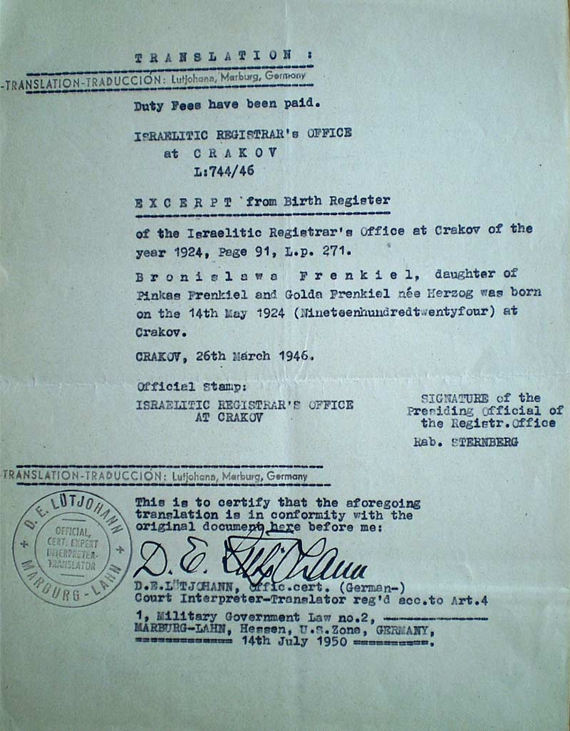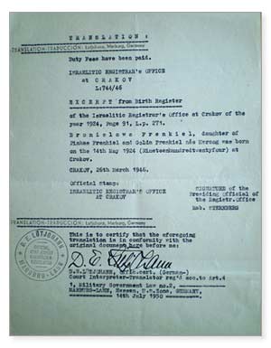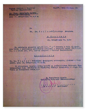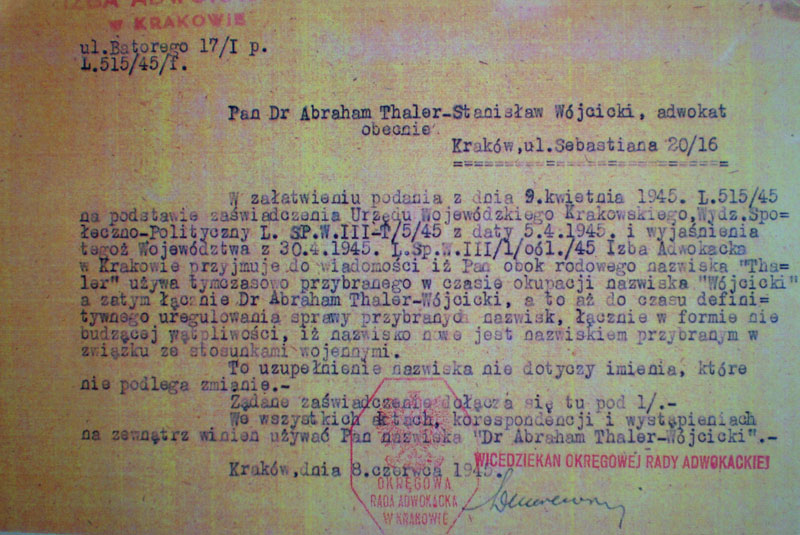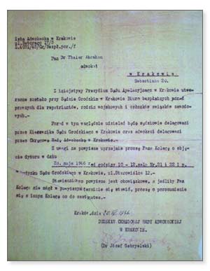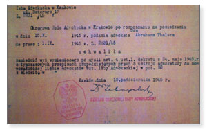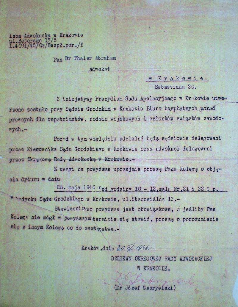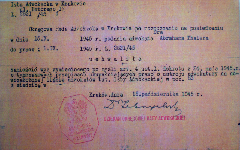 Acceptance of Abraham by lawyers bar in Kraków Oct. 15, 1945.