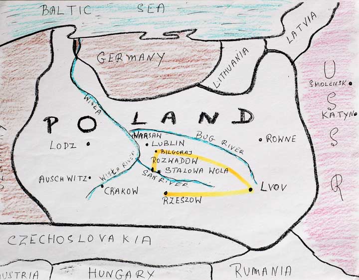 ![]() Map of Rozwadów, 1939 click image to enlarge This drawing by the author is from his book "In Search of Heros" |
